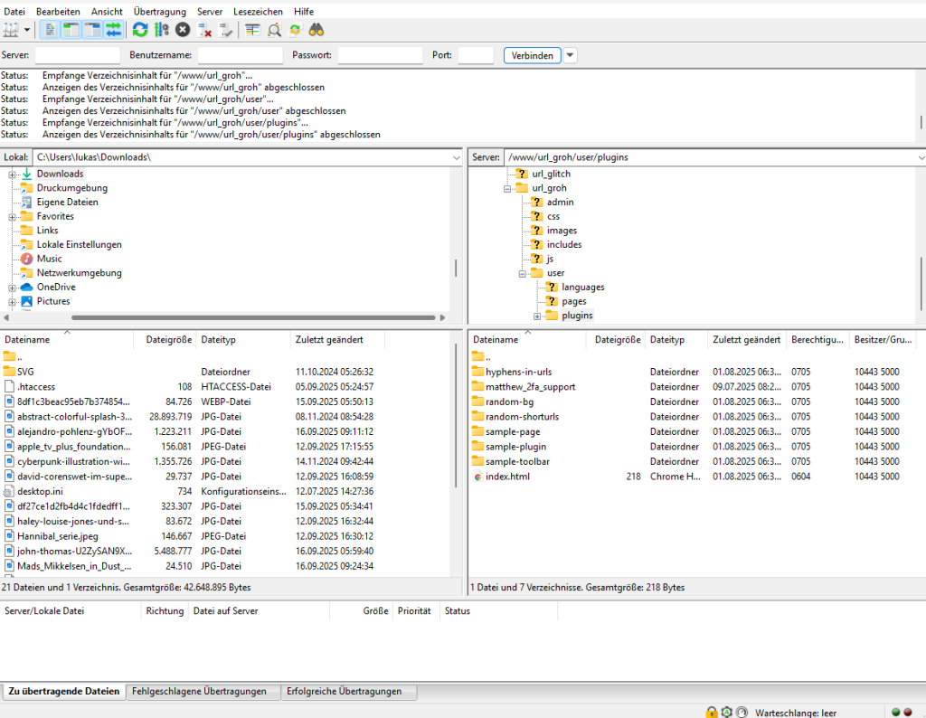 Nachdem du die Plugin-Dateien heruntergeladen hast, musst du sie auf deinen Webserver hochladen. Verbinde dich per FTP (File Transfer Protocol) mit deinem Server und navigiere zum user/plugins-Verzeichnis deiner YOURLS-Installation.