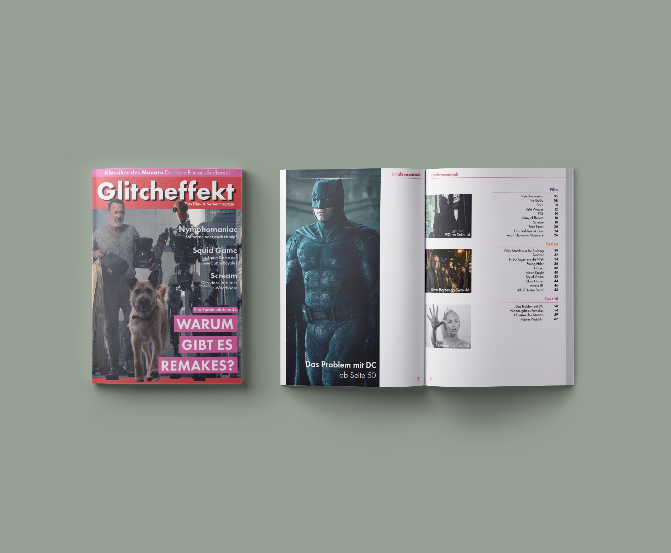 Von Online zu Print! Ich habe Artikel aus meinem Online-Magazin "Glitcheffekt" ausgewählt und sie in ein Printmagazin integriert, um mein Portfolio zu erweitern. Mein Ziel war es zu demonstrieren, dass ich auch in der Gestaltung von Printprodukten versiert bin. Um potenziellen Kunden zahlreiche Referenzen bieten zu können, habe ich kurzerhand meine eigene Referenz in Form dieses gedruckten Magazins geschaffen.