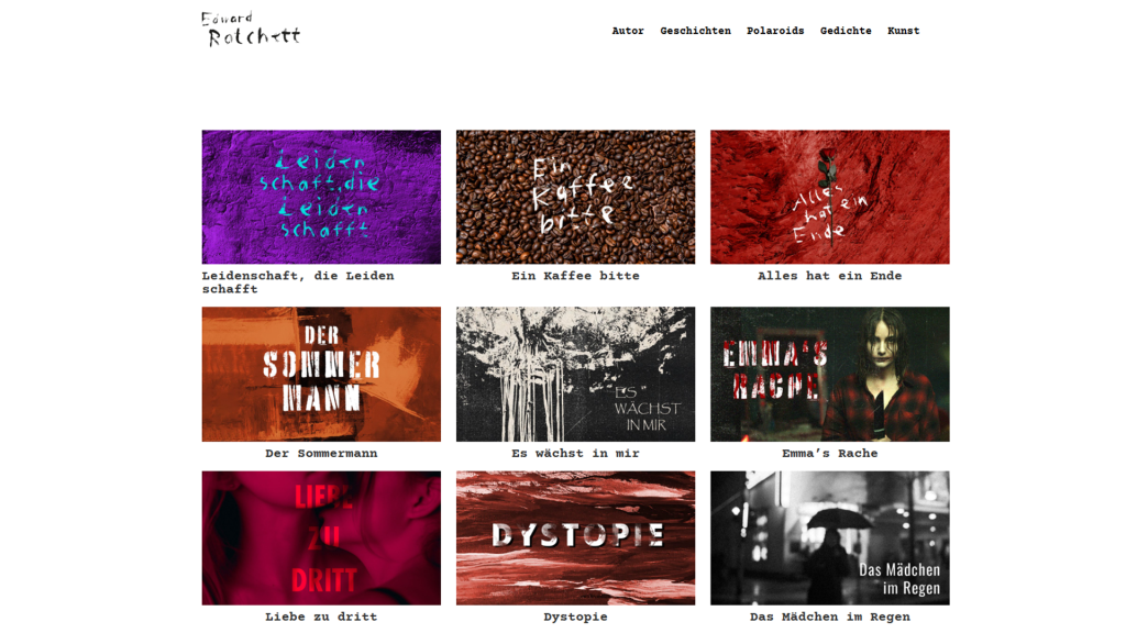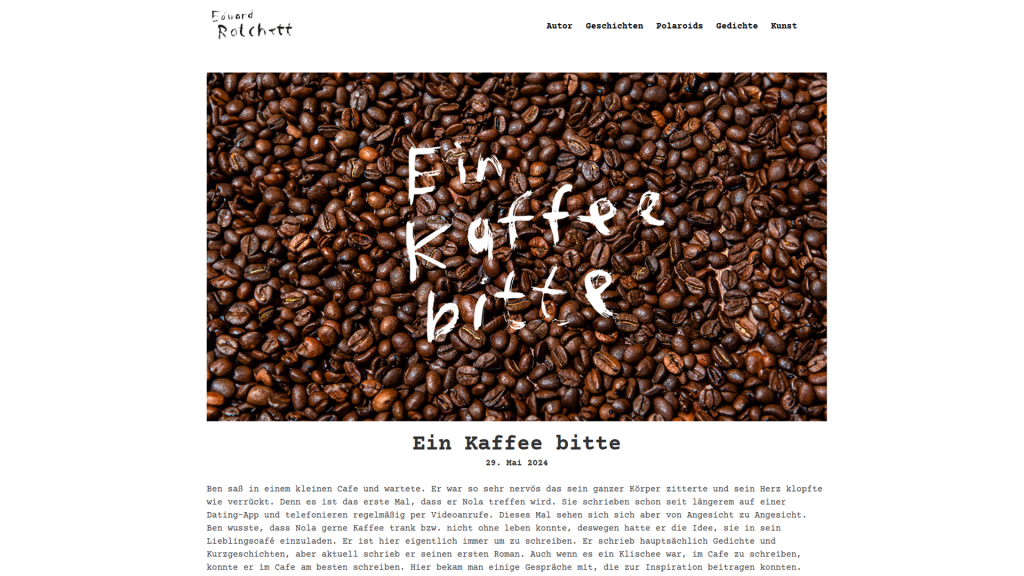 Für mein Schreibprojekt Edward Ratchett habe ich nach langem Hin und Her eine Website baut. Die Website habe ich mit WordPress und Elementor. Das Ziel der Website ist es, alle meine Kurzgeschichten auf meiner Website veröffentlichen zu können. Die Seite hat wenig Seiten und fokussiert sich auf die Kurzgeschichten.